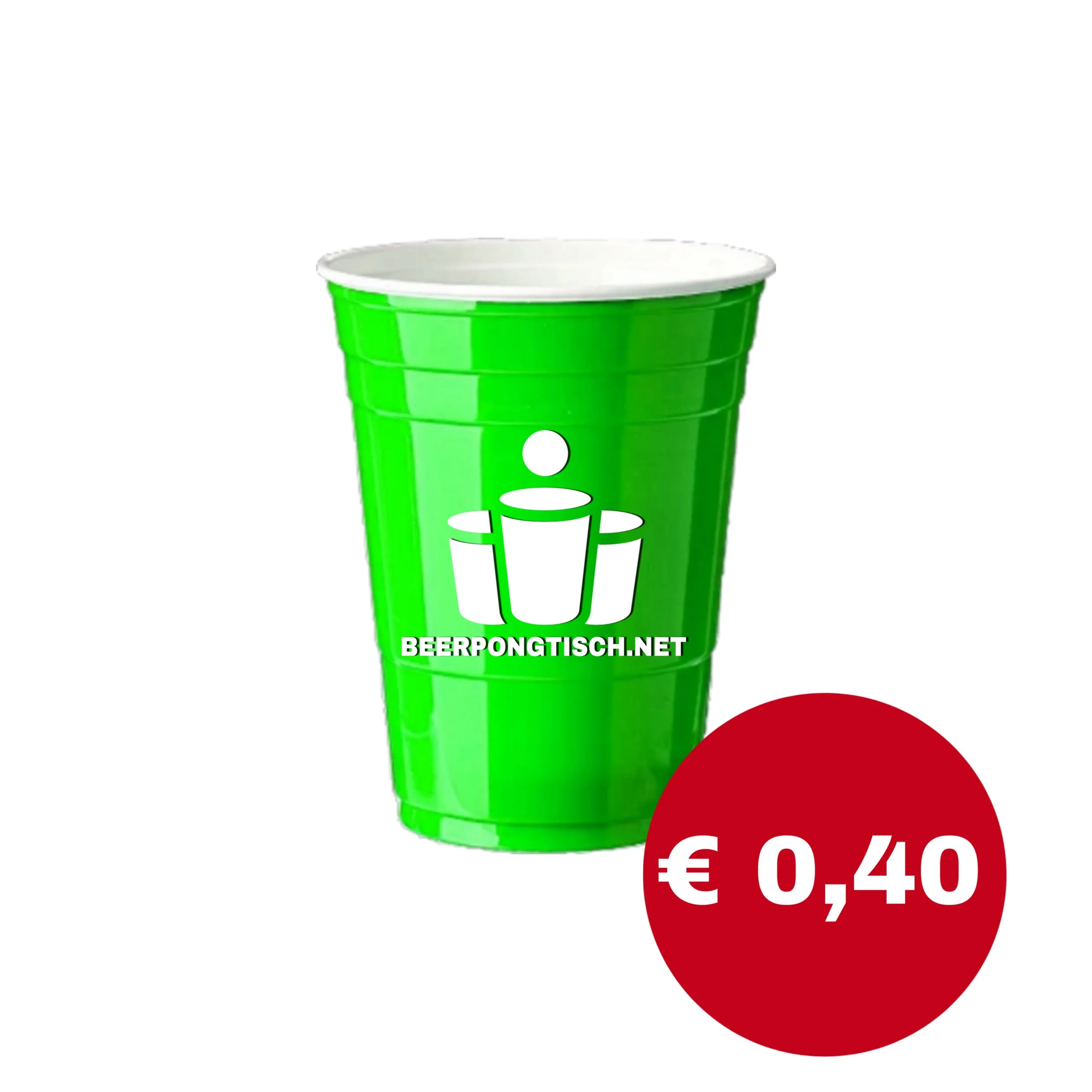 Wiederverwendbare Plastikbecher mit klassischen Beerpong Maßen in knall- grün!