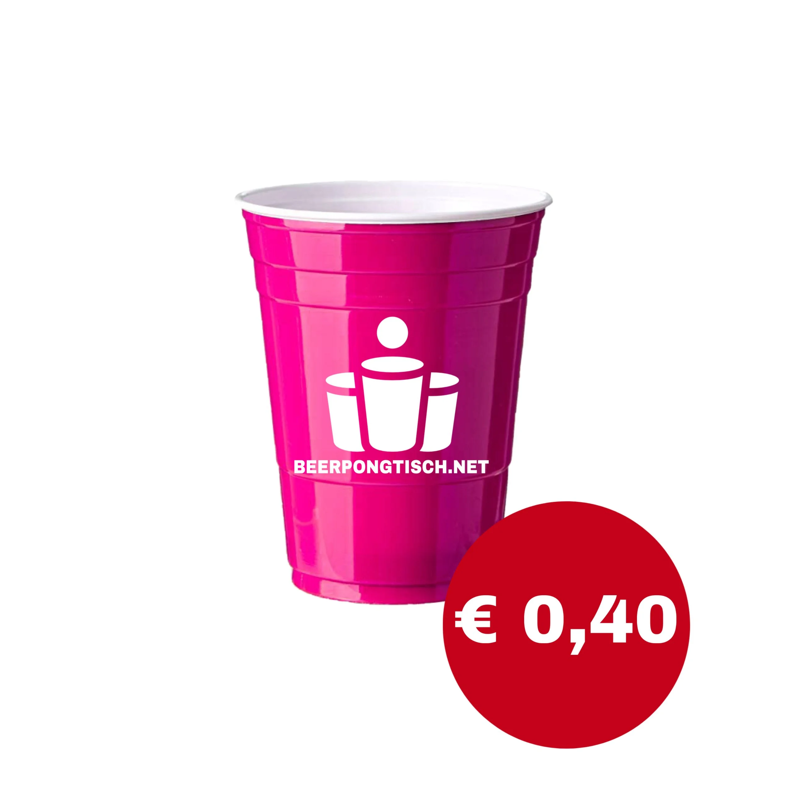 Wiederverwendbare Plastikbecher mit klassischen Beerpong Maßen in hot pink!