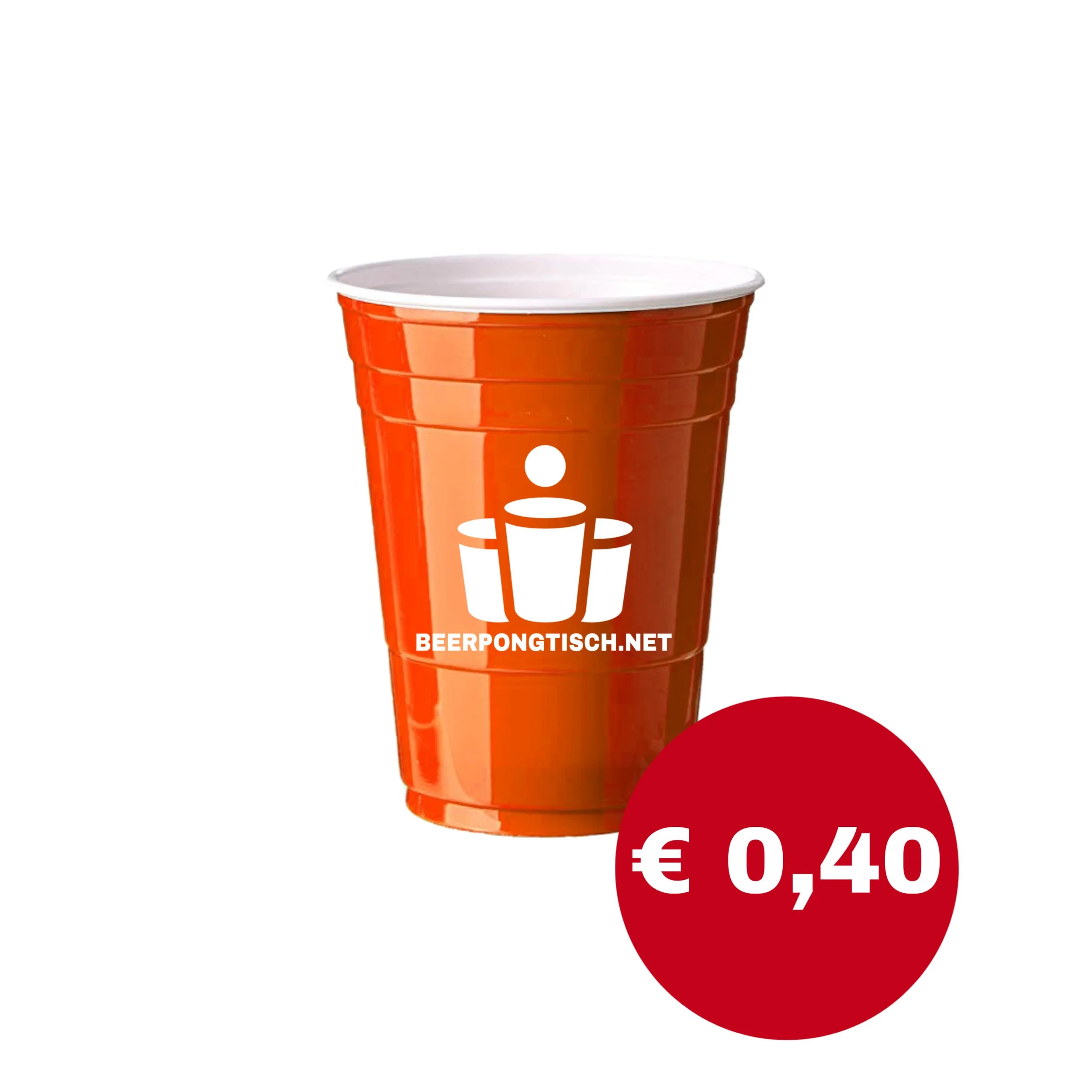 Wiederverwendbare Plastikbecher mit klassischen Beerpong Maßen im satten orange!