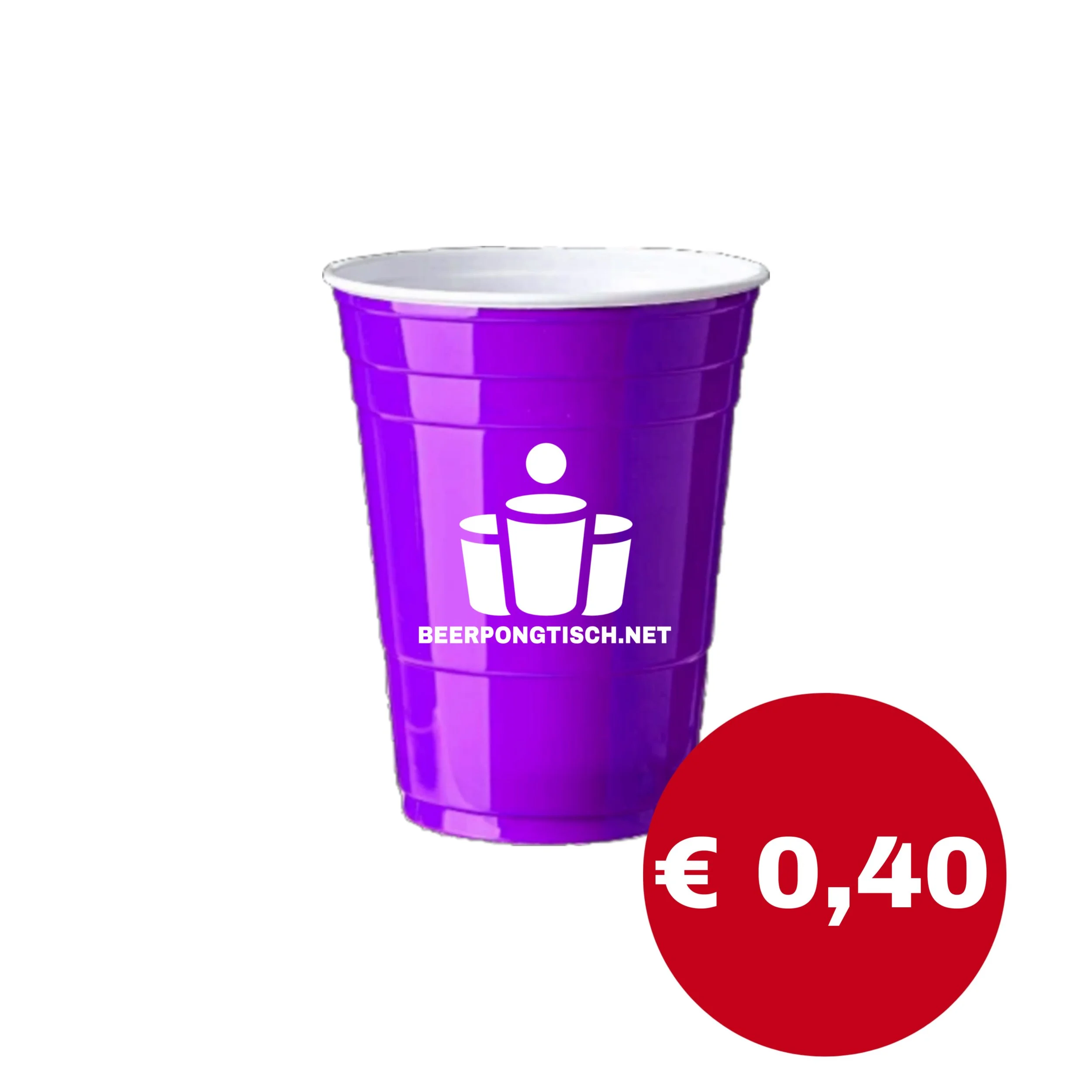 Wiederverwendbare Plastikbecher mit klassischen Beerpong Maßen in ultra-violett!